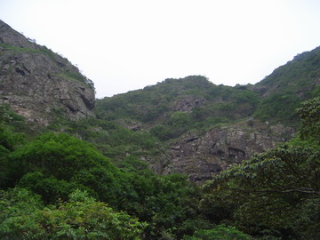 中游則是險中之險,短短五百米水平,先是"猿啼峽"壁崖垂削,左為"簷崖四壁",右為"鳳羽絕崖",澗道直上是無法上攀的"鳳舞瀑",盡是窮山惡水.最險的是"下飛簷崖",跟本不可通行,但險的何止"下簷崖"?從"簷崖棧道"回主澗,先有十多尺高的"藤梯崖",再有全段最難爬的廿多尺高瀑,全是濕壁,甚難爬,於瀑水會照頭淋,增加了爬壁難度,有5星難,十分消耗體力。過此崖不久再翻越一水管壁就可回鳳徑。