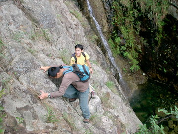 約廿多尺高,全是濕壁,甚難爬,於瀑布會照頭淋,增加了爬壁難度,有5星難,十分消耗體力。