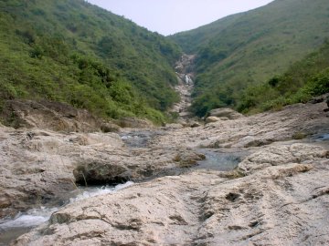 「四疊潭」過後,已是青大的上游,遊人可離澗接山路往良田坳,亦可繼續溯上游,上游很平坦,沒有特色,還是離澗而去吧。