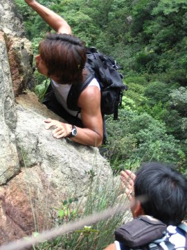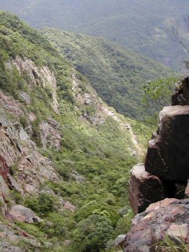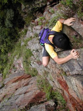 攀升絕龍谷中,可看出攀爬時的險,但身在谷時,隨了上攀是沒有第二條路可選擇了,這是我不建議大家去臥龍的原因。
