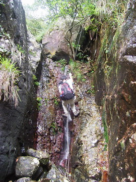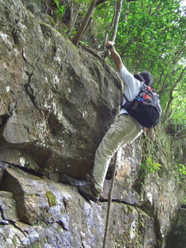 約廿多尺高,全是濕壁,甚難爬,於瀑布會照頭淋,增加了爬壁難度,有5星難,十分消耗體力。